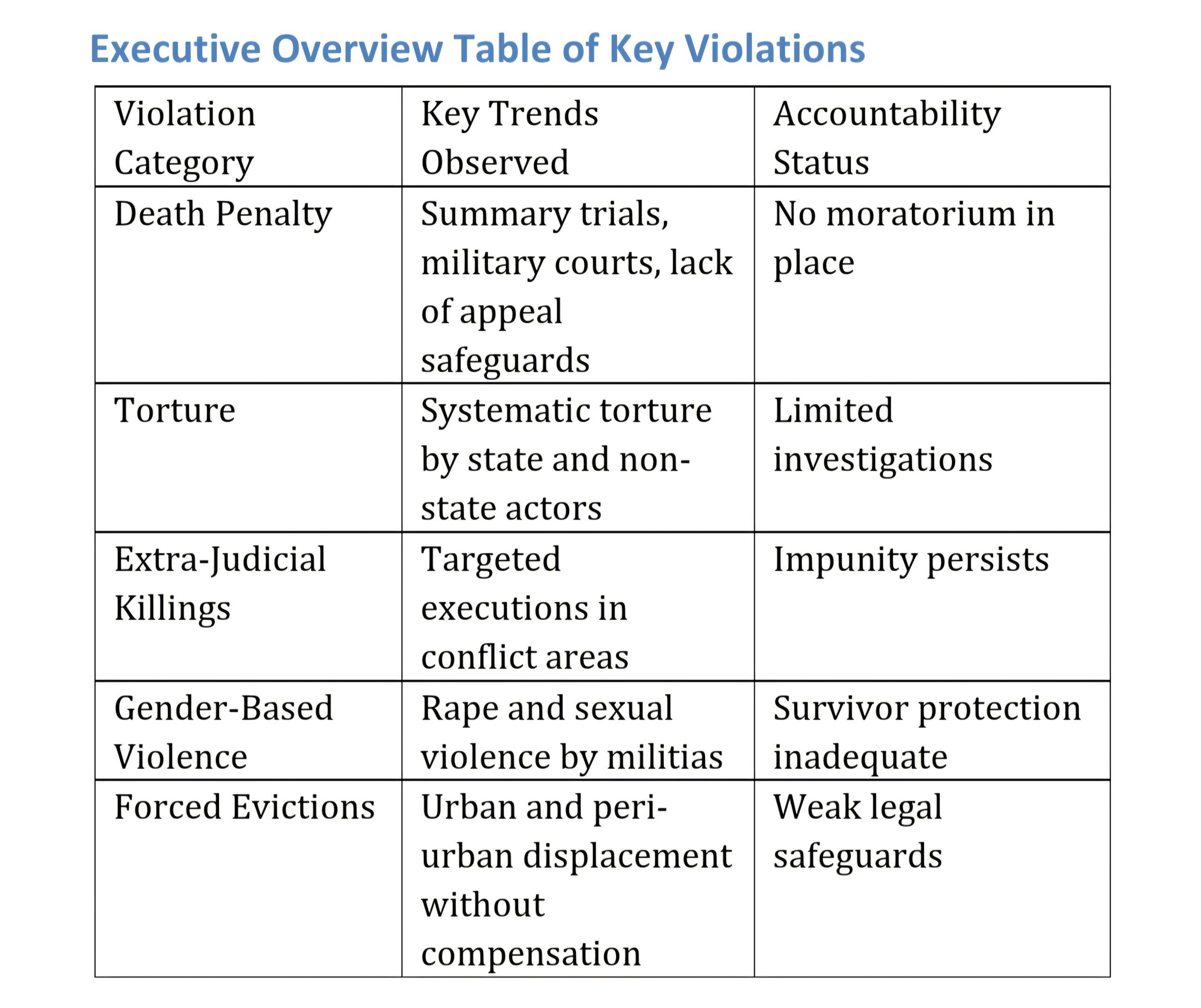 – Continued executions without full fair trial guarantees (ICCPR Articles 6 & 14).